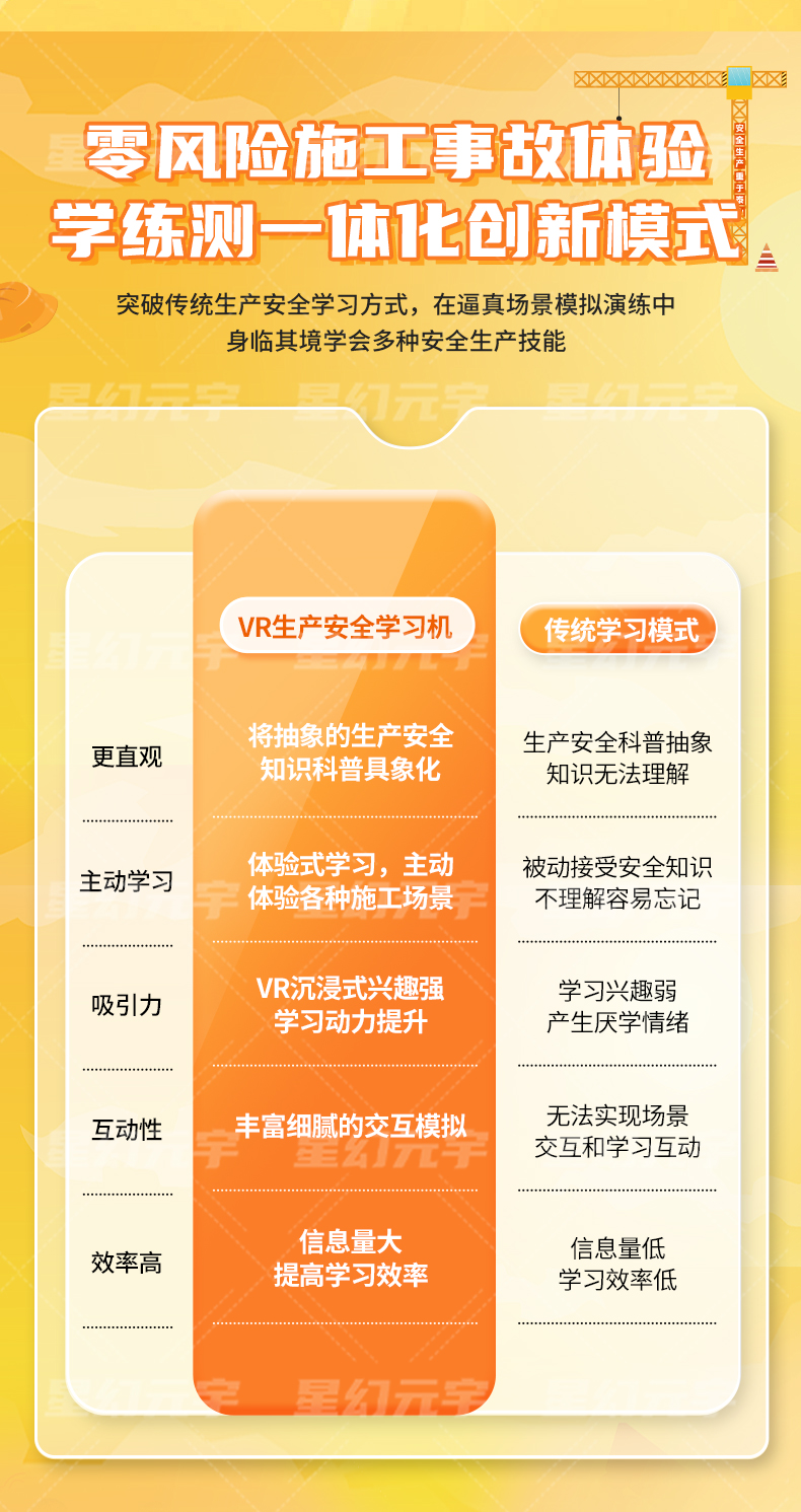 VR 生产安全学习机是一款专为生产施工领域安全培训打造的化教学设备,融合了 VR 技术与安全生产培训需求,采用 “学练测一体化” 创新模式,为用户提供、沉浸式的安全学习体验。