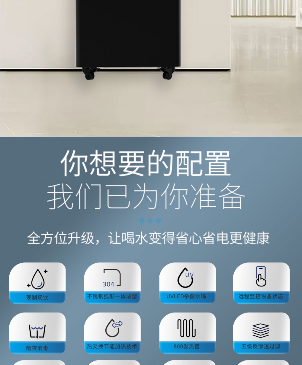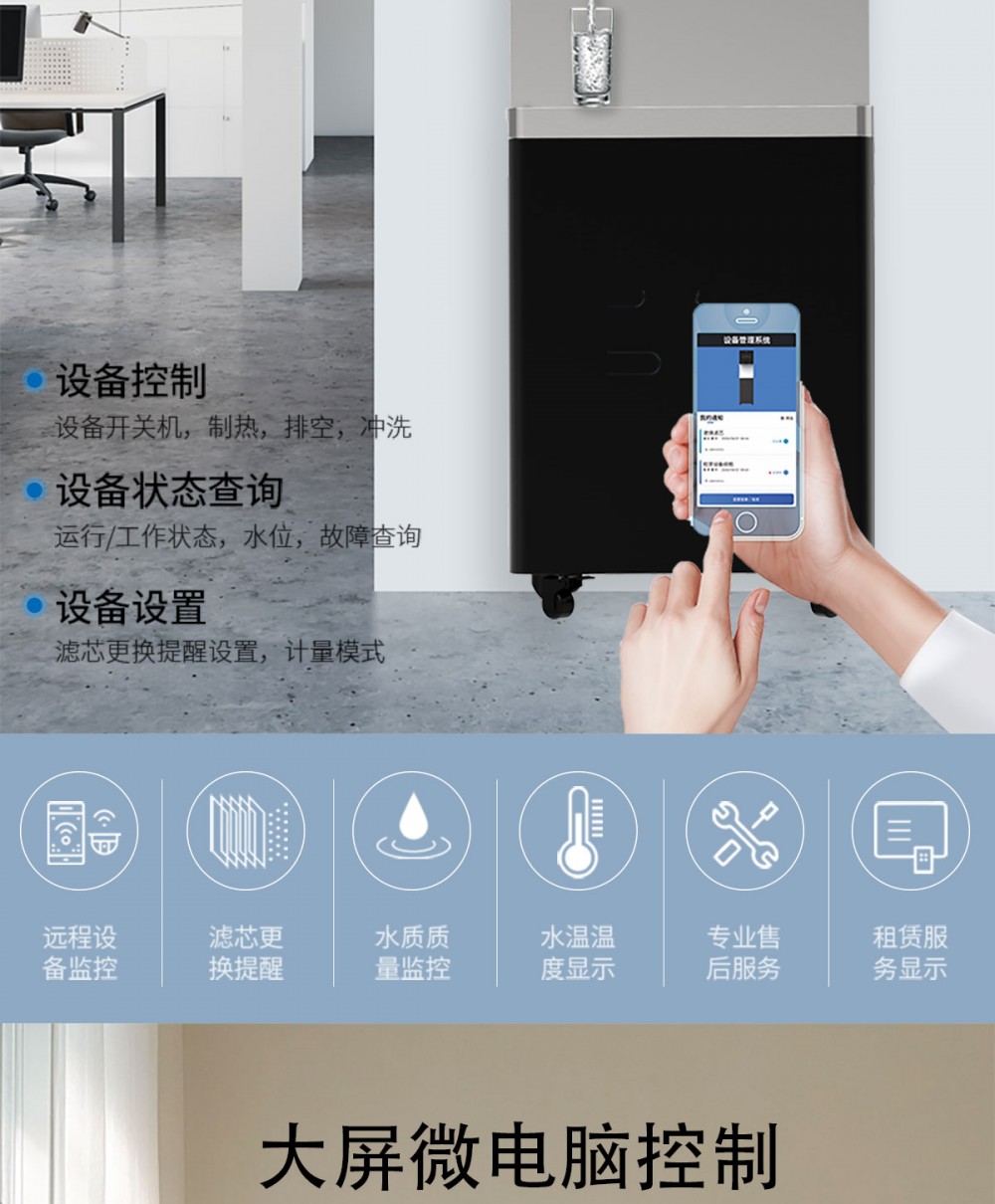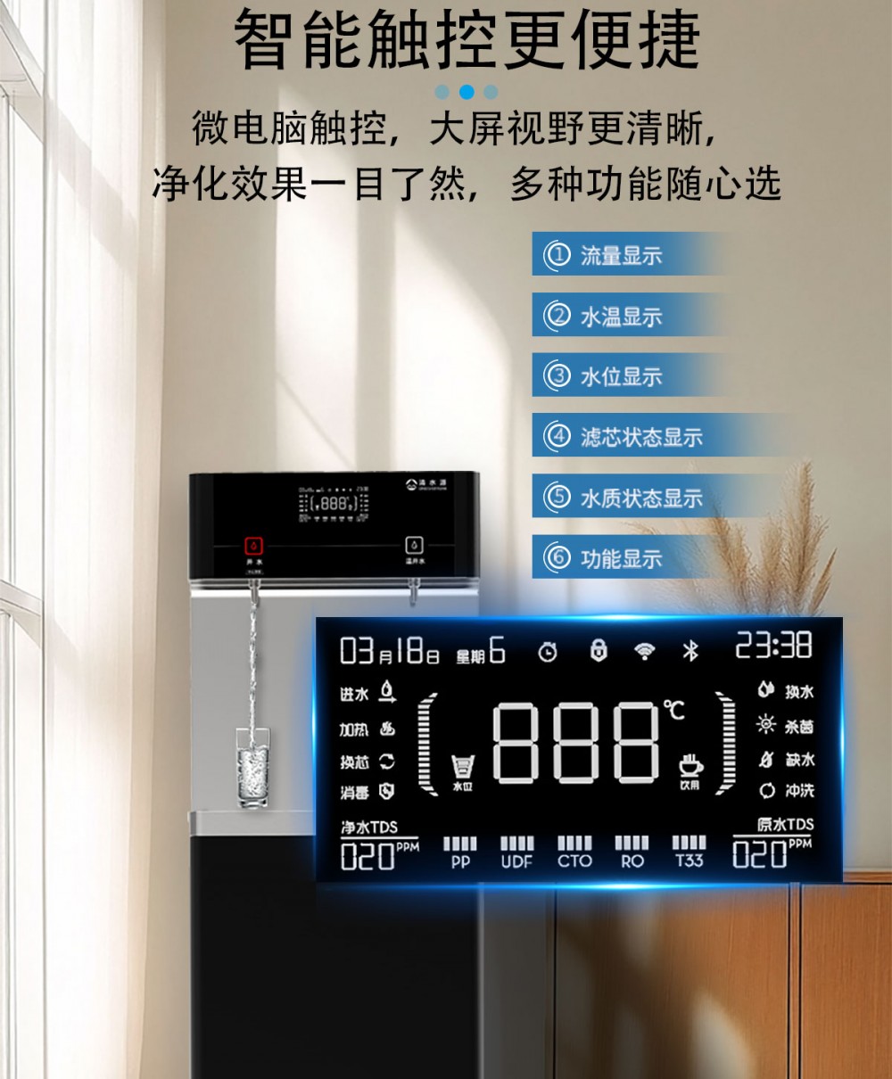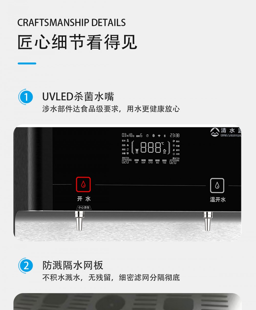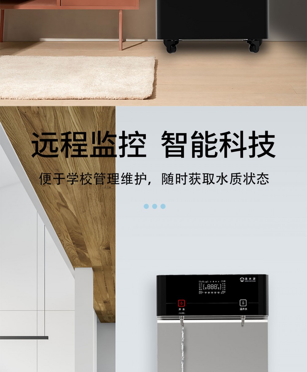 产品尺寸550*450*1400mm,出水量开水20L/H温开水80L/H,电压220V,功率2kw,可供应50人。清水源品牌一开一温节能式直饮机,水箱容量18L,该容量水箱可供应50人饮用,可选择配备3级普通过滤。 五级反渗透过滤功能,显示触屏功能配合远程开关及定时功能,使得用户使用感提升,性价比更高。具有100%煮开、高温杀菌系统,确保水质健康、检测无忧。定时开关机、隔夜水定时自动排空、物联网自动报修、水质实时监测、滤芯消耗更新显示、手机远程开关机等特点。零售价为9160元/台。联系电话:13138176786,公司名称:深圳清水源饮水设备有限公司,公司网址http://www.qsy68.com,公司座机服务热线:400-891-5619/0755-82246786。