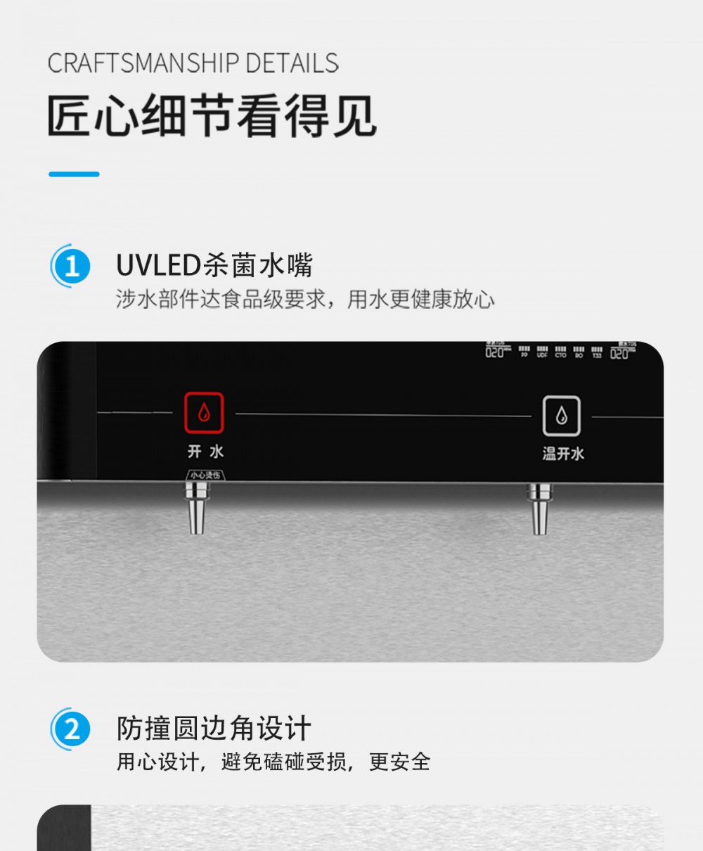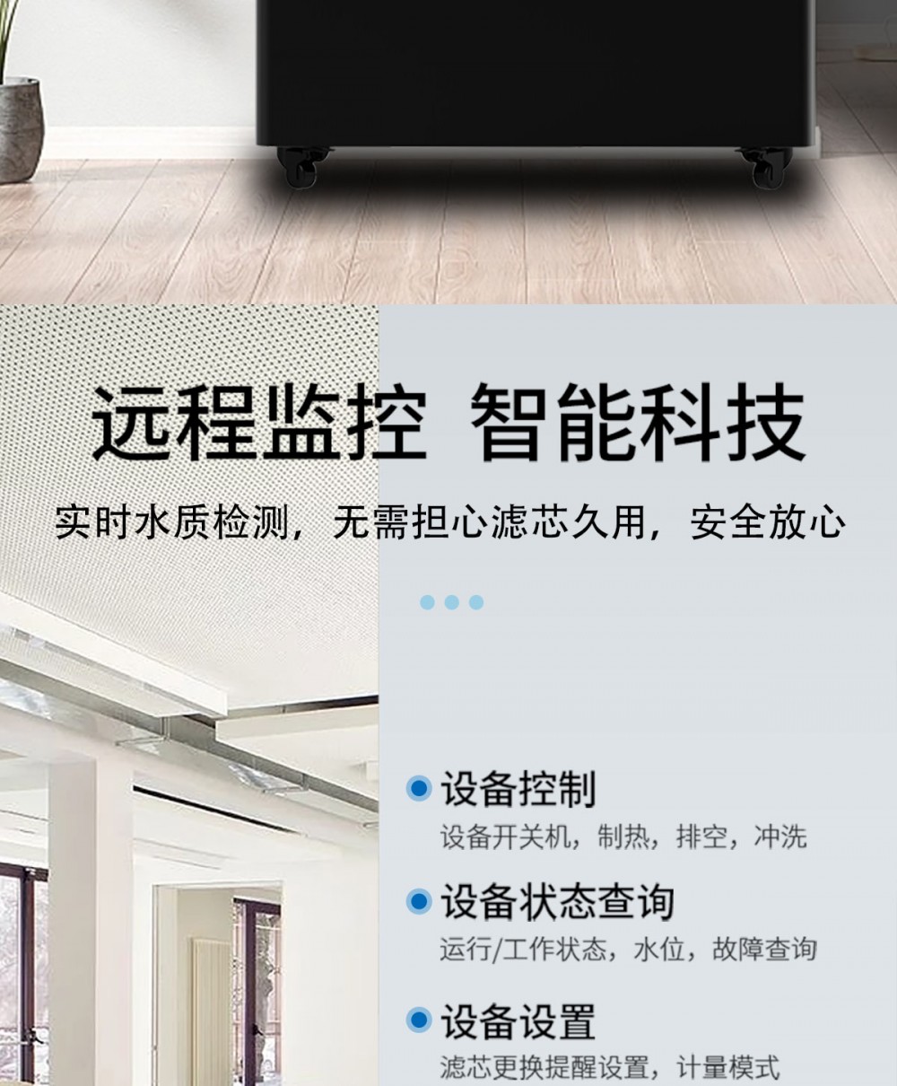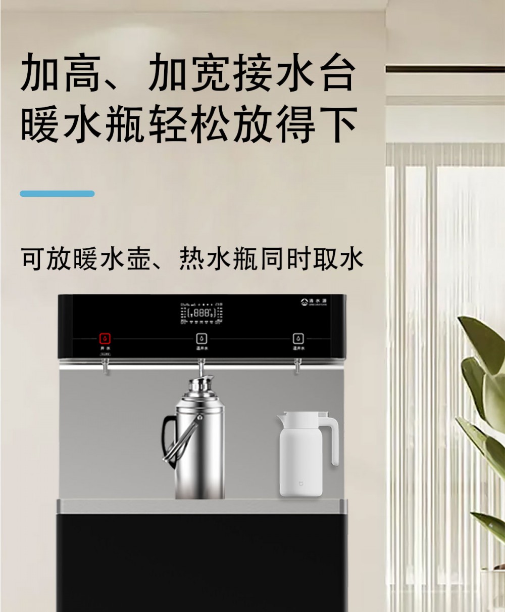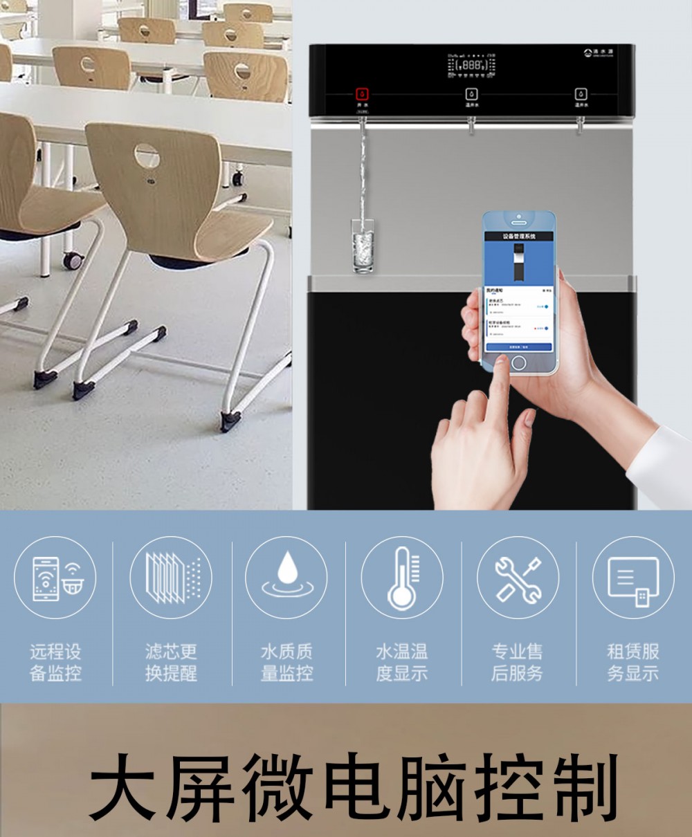 产品尺寸900*450*1400mm,出水量开水30L/H温开水100L/H,电压220V,功率3kw,可供应100人。清水源品牌一开二温节能式直饮机,水箱容量27L,该容量水箱可供应100人饮用,可选择配备3级普通过滤。 五级反渗透过滤功能,显示触屏功能配合远程开关及定时功能,使得用户使用感提升,性价比更高。具有100%煮开、高温杀菌系统,确保水质健康、检测无忧。定时开关机、隔夜水定时自动排空、物联网自动报修、水质实时监测、滤芯消耗更新显示、手机远程开关机等特点。零售价为12680元/台。联系电话:13138176786,公司名称:深圳清水源饮水设备有限公司,公司网址http://www.qsy68.com,公司座机服务热线:400-891-5619/0755-82246786。